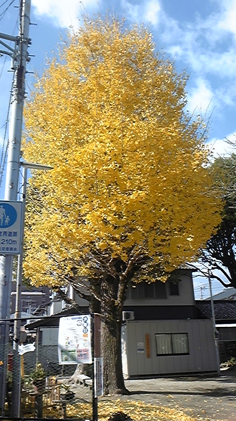 お写真は、弊社の西の方角にある遊園地のイチョウの木です。