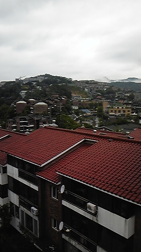 お写真は週末の友人宅からの景色です。あいにくの雨でしたが、早朝に
