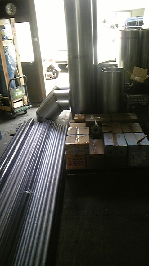 工事もあり、弊社倉庫も資材でいっぱいになっております。