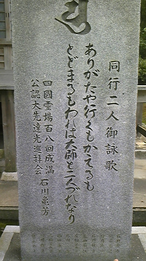 同行二人の御詠歌「ありがたや 行くもかえるも とどまるも われは大師とふたりづれなり」