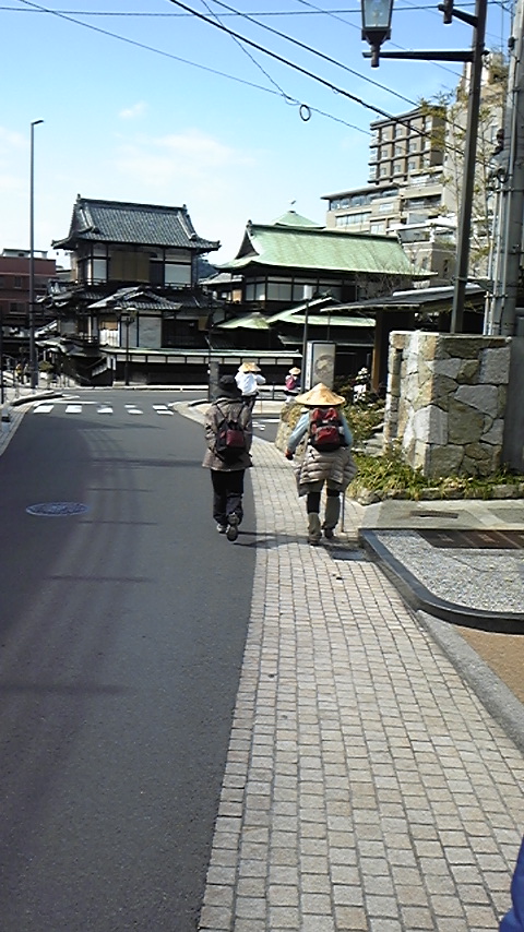 3か寺回りました。お写真は道後温泉を歩くメンバーです。