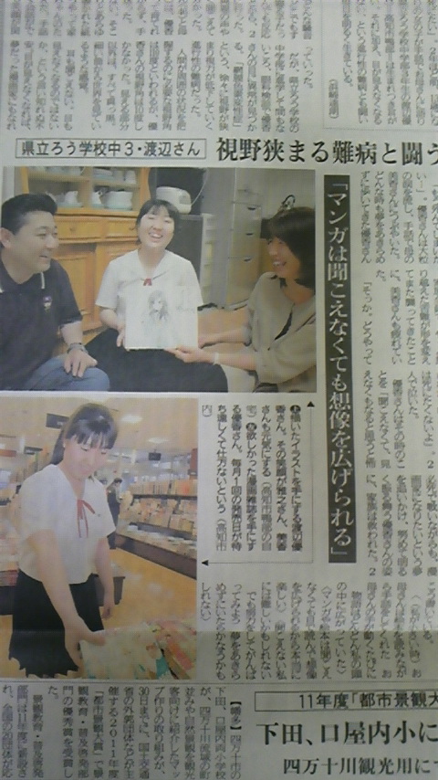 × [PR]上記の広告は3ヶ月以上新規記事投稿のないブログに表示されています。新しい記事を書く事で広告が消えます。 勤務先であります、中村農園のイベントに参加しました。 圧巻!420種類のゆりを一気に見る事が出来ます。 それはそれは綺麗でした。香りにも癒されました。 このイベントで一気にゆりが咲くように、それぞれの球根を 時期をずらして植えたそうです。 その担当が井上君との事、本当に立派なお仕事です。 以前彼が、ユリをわざわざ贈ってくださり、感激したことですが、 今回も別のメンバーが来月結婚するので、ブーケを 頂けるように、仕組んでくれたり・・・。本当に良い人です。 ありがとうございました。 さて土曜日は、再度「断捨離」に挑みながら、冬のグッズを片付けておりました。 さらにスッキリ!綺麗になった玄関に、またまた高級ユリを飾りました。 開花が楽しみです。 PR 皆さんの魂の年齢はおいくつですか? 見た目、実年齢、とは別に「魂の年齢」があるそうです。 例えば、年配の方でも、思考や行動が????の方は、 魂の年齢が若いそうです。 嫌な人にあっても、魂は赤ちゃんなんだ~!と思えば 嫌いにならずに済みます。 逆に、年齢は若くても、魂の年齢が高い方もいらっしゃいます。 品格があって、批判や、愚痴を言わない。必要以上に詮索しない。 口が堅い・・・等々。こう言う方には、実年齢、付き合いの長短 関係なく、心を許せるものです。 さて、お写真が昨日行った「アルパシア」と言うレストランです。 ロケーション的には遠いのですが、評判のお店です。 人も、お店も、本物には人が集まるものですね。昨夜は素敵な時間をありがとうございました。 是非、お勧めの本読ませてくださいね。 さて、週末です。日曜日は中村農園のイベントに行ってきま~す。良い週末を! 今朝の高知新聞にも掲載されてましたが、 三翠園ホテル社長を勤められていた松尾さんは、 末期ガンであると告白され、 「今日が今生の別れです」と、ご挨拶されたそうです。 社長も大変辛かったと申しておりました。 山口県のご出身で東大法学部卒、高知県庁に赴任された ご縁で、高知市長に。本当に頑張って下さって残念です。 春の総会では何度かお見かけしましたが、随分痩せていらしたので 心配してた所でした。 さて本日は、朝からプラント関係の書類作成に追われています。 現場で作業する以外に提出書類も多く大変です。 しかし頑張れるのは・・・今日の夜のお食事会。美味しいイタリアンに行く予定です。 人参が前にぶら下がっていると、頑張れるものです。 お写真が、佐喜浜で頂いたお弁当です。 ボリュームと言い、内容と言い文句なかったです。 そして金目鯛のお刺身が食べれる!のが珍しいそうです。 東洋町→室戸を歩きますと、過疎化が進み、 人がいないのに驚きました。廃校になった小学校や 人の住んでない家が続く街並みを歩くと、悲しくなってきます。 日本の将来はどうなるのだろう?と、不安な気持ちにもなりました。 しかし、本当にお魚は美味しいです。 こんな美味しい物を提供できる、街の火を消さないように、 ドンドン高知を売りださなくちゃ!と思いました。 お仕事の方は、プラント業務がスタートしたばかりです。 社員全員頑張ってくれています。 無事終わったら、美味しい魚を食べに連れていってあげたいです。 渡辺優香ちゃんの記事でした。(大きくなっててびっくり!) 優香ちゃんは3歳のころ、朝倉手話教室にお母さまと 通っていました。わたくしは、子供のろう者と接するのは 初めてで、小さいのに、本当に素晴らしい表情をしながら、 手話でお話するのが、本当にかわいかったです。 その優香ちゃんが、目が見えなくなるかもしれない 進行性の難病と闘いながら、毎日を明るく生きている。 と言う記事でした。 お母さまも本当に娘のために手話を覚え、頑張ってらっしゃて・・ 「家族全員で、やっと乗り越えた苦難が、形を変えてまた襲ってきた」とありました。 愕然です。中学校3年生です。「もう死んでしまいたい」と思ったのは当たり前だろう と思い、涙があふれました。 でも「未来に向けて頑張りたい」と夢を持って頑張っています。 なんか自分の小ささ、また周りにいる、不満だらけの大人に嫌気がさしてきました。 こんな苦難を、前向きにとらえている優香ちゃん。 応援するから、是非神様守ってあげて欲しいと、朝から朝刊かかえてうなっておりました。 |