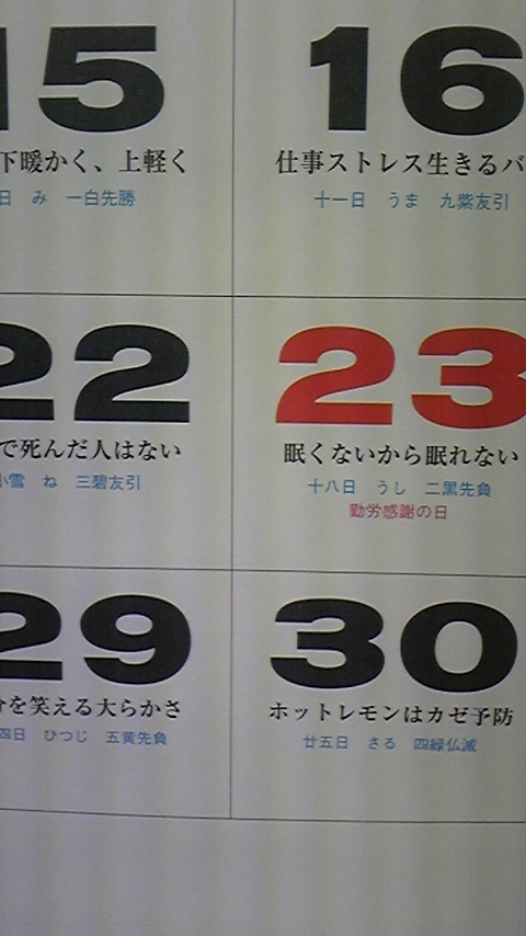 × [PR]上記の広告は3ヶ月以上新規記事投稿のないブログに表示されています。新しい記事を書く事で広告が消えます。 何時ごろか忘れましたが、昔からそのような質問を受ける事が ありました。おそらくこの濃い顔のせいだと思います。 しかし最近初対面の人から、必ずこの質問を受けるので、 ちょっと自分でも不思議に思っておりました。 その理由が分かりました。 さて、31日はハロウインでしたね。ハワイ在住の妹の職場は 必ず仮装をするのです。お写真が今年の仮装です。 実は妹見つけられなかったのです。小さいお写真ですが、 左端のチアガールは男性の女装と思い、どれが妹???と 探し回っておりました。 それが・・・なんと妹でした。実はオカマと思ったのです。 これで、上記の質問の意味がわかりました。「ハーフですか?」と言う質問は、 「ニューハーフですか?」だったのでしょう! 完璧、男か女かわからなくなっているシスターズです。(大笑い) それでは・・・皆様良いお休みを PR このお父様には、本当に可愛がって頂ました。 何度も泊りに行って、何度も飲みあかしました。 そんな時いつも「美紀ちゃん、美紀ちゃん」と言って 喜んで頂きました。 わたくし今は、自分の子供の友達を、可愛がっておりますが、 そう言う事を教えてくれたのは、このお父様のお蔭です。 さて本日のお仕事、5つの現場をこなしております。 来年はお正月も返上が決まりました。大変ですが嬉しい限りです。 頑張って全員で乗り切ります。 明日は週半ばのお休み。嬉しいですね。弊社は現場があります。 わたくしは、メンターのお友達が紹介して下さった、公演に参加する予定です。 後は読書。現在このお写真の「加藤諦三さん」の本、読みまくっております。 この本も、「目から鱗」でした。 こんなお休みは、たっぷり読書に時間を使える事が幸せです。 それでは皆様も良いお休みになりますように・・・・。 土曜日はメンター講座5回目。今回の内容は良かったです。 一番心に残った言葉は「願えば叶うではなく、叶うから願え!」です。 目標を持って生きることの大切さを、何度も勉強するのですが、 この言葉は心に響きましたね。 皆様も、願いを持って下さい!必ず・必ず叶いますよ。 その夜は、相方ちゃんと近所のお店にちょこっと顔を出しました。 平均年齢70歳のメンバーが集うお店で、皆様とはお久しぶりでしたが、 楽しいお酒となりました。ちょこっとのつもりが長々となり、 翌朝は早朝からの、団地の草刈り・そうじ・ダンス教室・・・・ 1つしかこなせなかったです。トホホ。やっぱり飲み過ぎは注意です。 夜は、日韓親善協会の会合に、もう一人の相方ちゃんと参加しました。 お写真は、高知県のリチャードがご挨拶中のところです。 リチャードと相方ちゃんは同じ職場なので、3人で楽しくお話しできました。 韓国料理もおいしかったです。合間に家や庭の掃除もして、充実した週末となりました。 さて、11月です。今日も3つの現場こなしております。 そして、社員も現在残業しております。皆頑張っております。 さて、月末ですので、カレンダーをめくりました。 今年も残り2枚、少なくなりましたね。 一年もあっと言う間です。一日一日を大切にしなくてはなりません。 このお写真のカレンダー、毎日健康に関する言葉が載っております。 密かに気に入っていましたら、常務も気に入っておりました。(笑う) 少し紹介しましょう。 「遊びと仕事人つくる」「神社仏閣歩く絶好の目標」 「アル中の平均寿命50歳」「不眠で死んだ人はない」 「生きる原則稼いで食べる」「自分を笑えるおおらかさ」等々です。 50歳で死なないように気をつけます。 しかし、わたくし11月殆ど週末埋まってしまいました。嬉しい悲鳴です。 皆様も似たような状況でしょうね?お互い頑張りましょう。 さて、週末です。”日韓親善協会懇親会”またまた会合入っております。 寒くなりましたが、残り少ない秋を楽しんで下さいね。皆様、良い週末を・・・ 本当に素晴らしい体験でした。参加して良かったです。 先ず座り方、姿勢を習い、その上でやり方を習いました。 「心を無にする」事はなかなか、難しいです。 呼吸によって整えるのですが、呼吸のみに集中は出来なかったです。 周りの音も、動きも全部気になってしまいました。 15分終わったあとで、先生に「坐禅の経験はありますか? 姿勢が物凄く綺麗です」と、褒めて頂きました。褒めていただくと すぐ調子にのるわたくしです。坐禅も続けてみたいと思いました。 懇親会でもお話をきけたので、市内でも、教室がある事が分かりました。 その時「腹を練る」こんな言葉も初めて教えてもらいました。坐禅で「腹を練る」。 どういう意味か分かりませんでしたが、その言葉の意味も分かるように成長したいです。 先生がもうし少し、基本を勉強して、御自宅でやったら良いと、おっしゃておりましたので、 坐禅教室にも参加してみます。ますます
