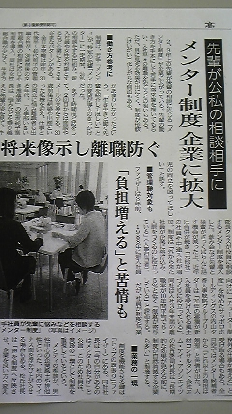 × [PR]上記の広告は3ヶ月以上新規記事投稿のないブログに表示されています。新しい記事を書く事で広告が消えます。 と、言うタイトルの講演に参加しました。 なかなか良いお話でした。少し紹介しましょう。 どんな成功者も、お金持ちも、皆な心の中に悩みを持っています。 凄い成功をした人でも、ず~とその成功が続くわけではなく、 必ず悩みをもっています。 でも、「夢」がある人の脳は生きいきしているそうです。 そして、夢の元は感動! 日々の時間におこってくる事を、ワクワク期待しましょう。 楽しい・嬉しい・美味しい・・・なんでも良いのです。 「陽転思考」でいましょう!とおしゃっていました。 もし、貴方がそれをしよう!と夢を持ったならば・・・。 ①マイナスの言葉は使わない。(年だから、お金がないから、こうだったら出来るなど) ②感動する。嬉しい~楽しい~と声に出す。 ③自分の夢を映像化する。 でした。 みなさん一生夢を持って下さいね。そして、貴方の夢をどんどん語って下さいね。とおっしゃってました。 参加して良かったです。 本日19時より、お友達の引き合わせで、ある交流会に参加します。 新しい出会いとなります。「どんな人が参加されるのかな~?どんなお話が聞けるのかな~? どんな美味しい物が食べれるのかな~?」ワクワク期待して陽転思考で参加します。 PR ホテル出口にて、その場にいた人を集め、一瞬シャッターを押しました。 「会長、ホントに撮りました?」と、全員が言ってました。 そのお写真、本日受け取りました。 驚きました!さすがプロ! 皆ニッコリ。一瞬のシャッターチャンスを捉えた素敵な 写真が出来上がりました。感激です。ありがとうございました。 さて、お気入りの言葉をひとつ紹介しますね。 「億劫だなと思っても、誰かに会ったり、仕事したり、 おいしいものを食べに出かけたりしないと、エネルギーは生まれない」 さて週末です。 家に閉じこもってばかりじゃ勿体ないですよ。「交流してますよ。」と言っても 仕事繋がりの人間ばかりとツルンデいても、それは定年で終了。 「人貧乏」が一番みじめだと思います。是非エネルギーを注入して、友達増やしましょう。 それでは皆様、良い週末を・・・ 追伸:本日偶然2名の方が、このブログ褒めて下さいました。 お褒め頂くとやる気が湧く、わたくしです。エネルギー頂きました。ありがとうございます。 メンター(mentor)と言う言葉を聞いたことはありませんか? 師匠・優れたアドバイザー・リーダーと言う意味です。 最近、教育現場・医療現場・企業等で重視されている制度です。 今回お友達の紹介で,体験させて頂きました。 誰もが、少なからずとも抱えている心の問題を解決する為の スキルとも言いましょうか、知って損する事のない内容でした。 「目から鱗」「なるほど!」っと思う内容ばかりでした。 経営者として、これから社員の心の問題や、あらゆる悩みを 理解するためにも必要ではないかと実感致しました。 今回は個人向けの内容でしたので、自分に重ねて聞いておりましたら 最後に講師の先生に「一番うなずいていましたね」と言われました。 なぜなら実感することばかりだったからです。 恥ずかしながら、わたくしの昔を思い出すと、問題行動の多い子供でした。 今回、この原因が分かって良かったです。 知らずに一生終えるより、知って解決する方がこれからの人生は変わります。 そう言う意味でも、今回の講座は貴重な体験でした。皆さんにもお勧めです! こんな日本で良いのでしょうかね? さて昨日より6月、衣替えとなりました。 弊社常務も風邪を引いているのに、半袖にして 更に、震えていました。 わたくしは6月なのに、ウインター下着を付け、 首にマフラー・膝にひざかけをしながら 本日なんとかお仕事こなしました。寒い! 発熱しないのが不思議。気力で風邪と戦っています。 さて先週末、障害者のスポーツ大会が開催されました。 わたくしのお友達が出場して、メダルを2つ貰いました。 大変喜んで、メダルの写真をメールで送ってくれました。 (本当はそのお写真アップしたかったのですが、なぜか出来ませんでした。残念) 60歳を超えた方ですが、とても一生懸命な方で大好きです。 他人が自分を認めてくれることは、1番の幸せだと思います。 おめでとうございます。山岡さん 小さいですが、ステージから降りてきて、生徒の近くで 歌われた時、パチリ。オーラーがあって素敵でした。 さて、お天気も良くないし、とにかく寒いですね~。 とうとうわたくしも、風邪ひいてしまいました。 昨夜は、一晩中うなされ、咳がゴホゴホ。 声も変わっております。熱はないのですが、本当に しんどかったです。大変風邪が流行っています。 皆さんもご自愛なさって下さいね。 お仕事の方は、多忙期ピークの6月となりました。 暑くないのは、救いです。 さて、昨日の新聞に「心の支えとなる言葉」と言うタイトルの記事がありました。 「ニーチェの言葉」