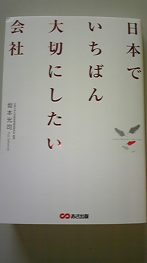 × [PR]上記の広告は3ヶ月以上新規記事投稿のないブログに表示されています。新しい記事を書く事で広告が消えます。 タイトルの終りが「・・・企業経営」と、ありましたので B/SとかP/Lの話かな~と思って参加しました。 本当に会場中が感動するようなお話でした。 詳しい内容は、この本に書かれてあります。 わたくしの経営方針として、ぼんやりと持っていたものと 一致し、昨夜で、確信に変わりました。 自分の信じる方向でやって行こうと!! 本日も引き続き、ゼミがありました。弊社からも 2名参加しました。皆それぞれ何かを感じ取って欲しいです。 このように、素晴らしいお話を聴かせて貰った会社に感謝です さて本日は、これから最後の経営革新塾に参加します。交流会もございます。