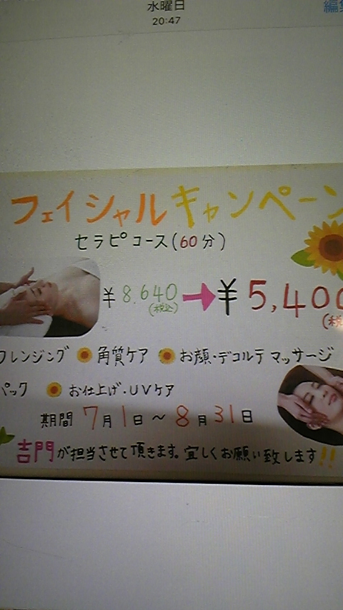 お写真のフェイシャルキャンペーンを利用しました。